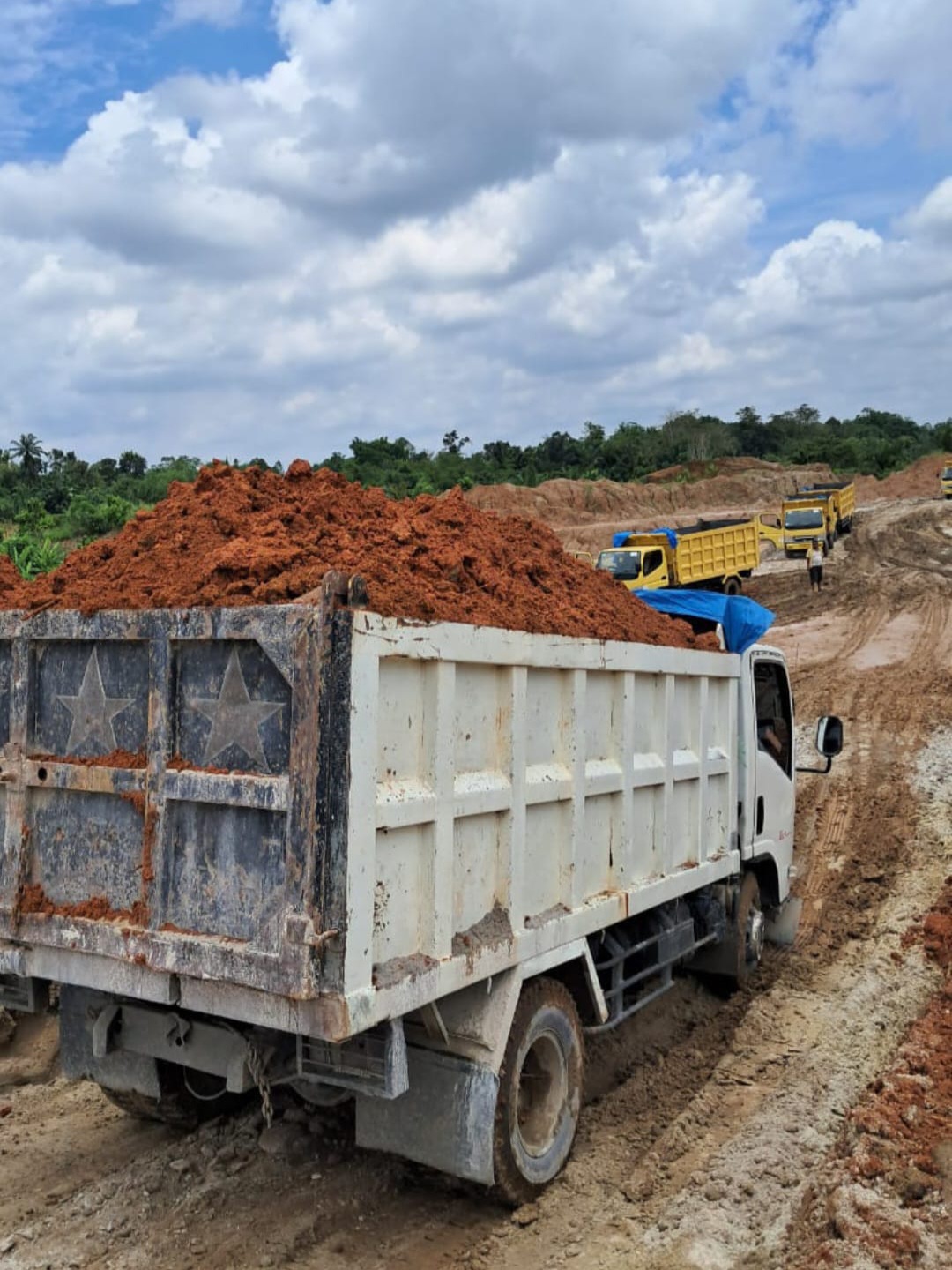 Selain itu, keluar masuk nya truk mengangkut matrial tanah mengotori jalan umum sehingga debu yang berterbangan dapat mengakibat kan penyakit saluran pernapasan.