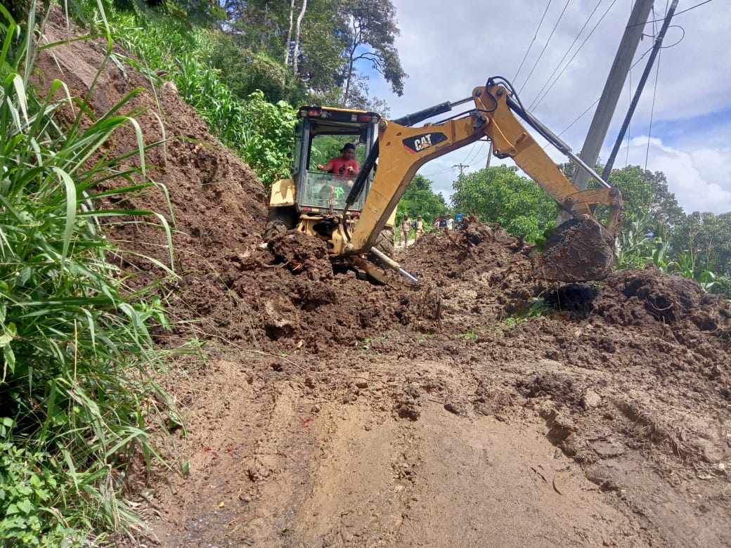 Tanahkaro|Tambunpos.com,Polsek Kutabuluh bersama masyarakat Desa Bintang Meriah, Dinas Pekerjaan Umum (PU) Kabupaten Karo, dan personel Polsek berhasil membersihkan material longsor yang menutup jalan penghubung Desa Bintang Meriah dan Desa Perbesi, Selasa (3/12).