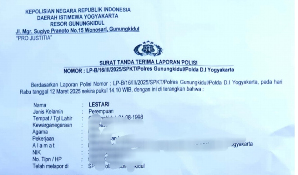 Foto: Surat laporan korban.