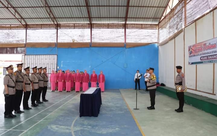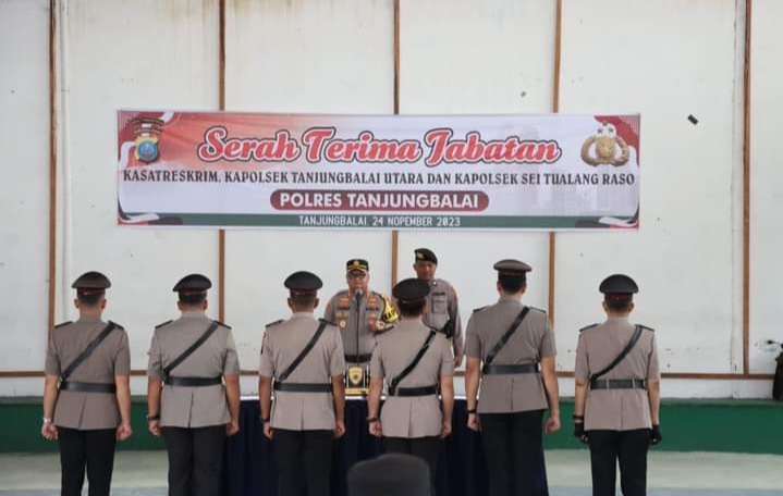 Serah terima jabatan yang digelar Polresta Tanjung Balai untuk jabatan Kasat Reskrim, Kapolsek Tanjung Balai Utara dan Kapolsek Sei Tualang Raso Polres Tanjungbalai.