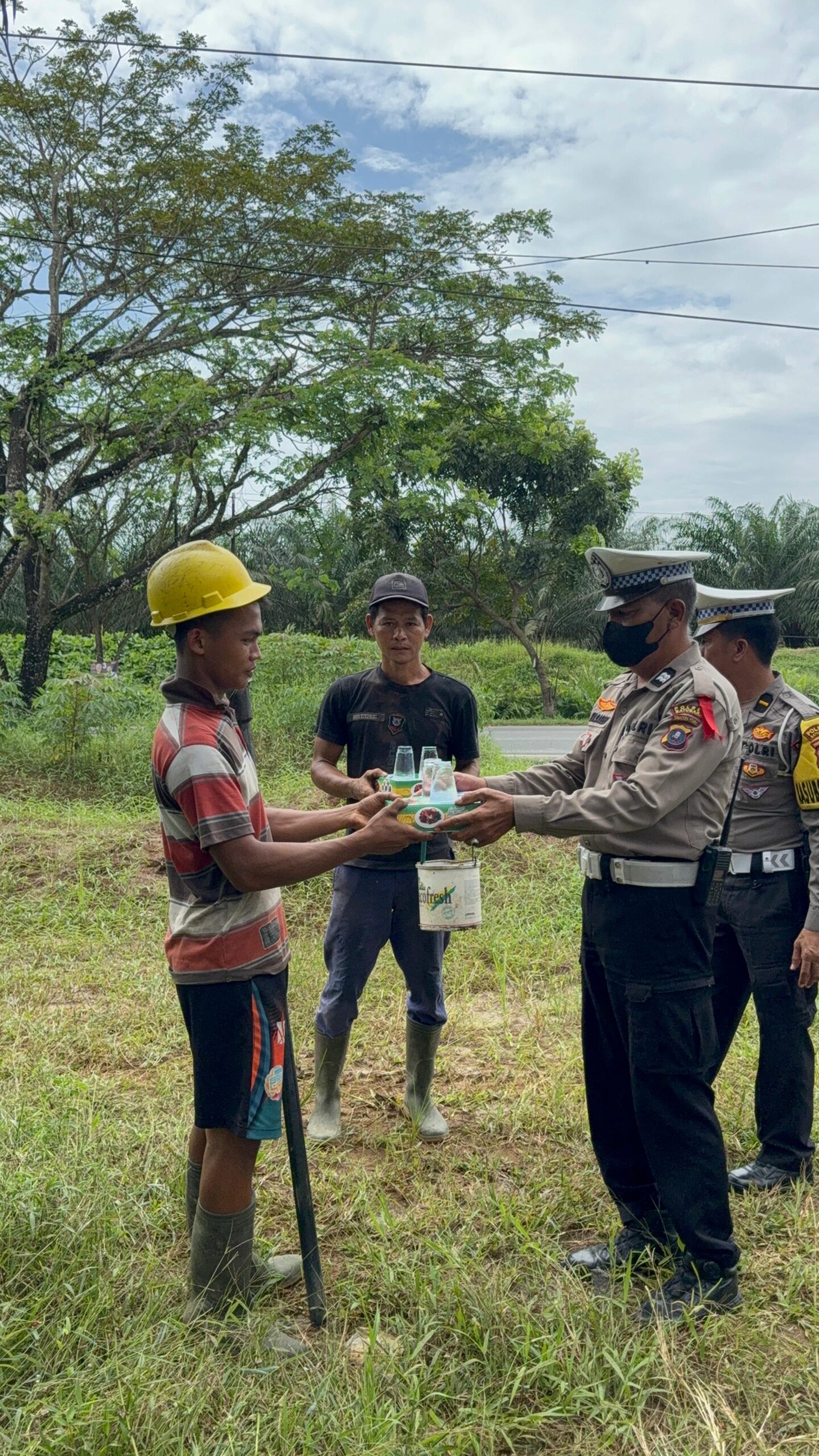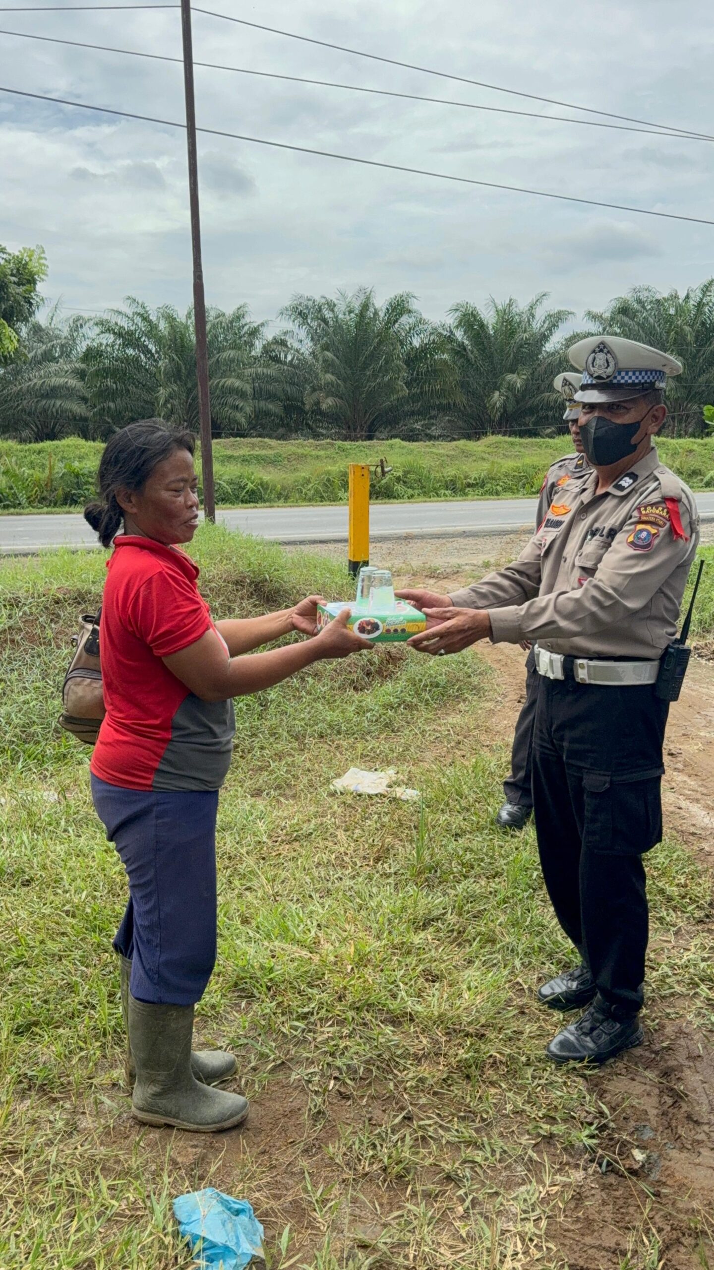 AKP. HW. Siahaan SH.MH, dan personilnya membagikan nasi kotak kepada masyarakat pengguna jalan yang melintas di sekitar Polres Batu Bara,ini sebagai bentuk kepedulian dan perhatian Sat Lantas Polres Batubara kepada pengendara,ucap Kasat.