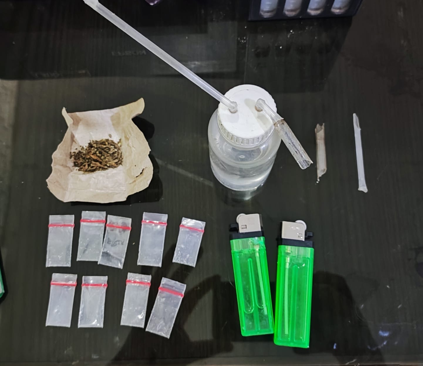 Saat petugas melakukan penggeledahan badan dari saku celana pelaku S Alias Tono juga ditemukan narkotika jenis Ganja yang dikemas dalam kertas pembungkus nasi ditaksir seberat bruto 1,18 (satu koma delapan belas) gram dan 2 (dua) mancis gas warna hijau
