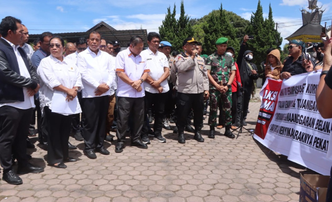 Bupati Karo DR. dr Antonius Ginting., S.pOG., M.Kes didampingi Kapolres Tanah Karo, Dandim 0205 TK Letkol Inf. Robet B. Panjaitan, Danyonif 125 Simbisa Letkol Inf. Haris Nur Priyatno dan Kajari Karo Darwis Burhansyah, S.H, M.H, menerima semua tuntutan para masa aksi dengan baik serta suasana kekeluargaan. Bahkan, usai penyampaian aspirasi, massa dan Forkopimda makan bersama, menari landek Karo, serta dilakukan pembagian sembako oleh pihak TNI. Dari mobil truk pihaknya.