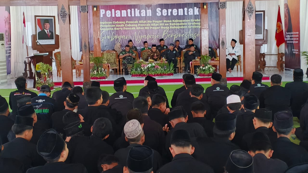 GROBOGAN ||Tambunpos.com – Segenap Kepengurusan struktural pencak silat Nahdlatul Ulama (NU) Pagar Nusa Kabupaten Grobogan mulai dari ketua pimpinan cabang hingga anggota baru dilantik secara serentak di pendopo Kabupaten Grobogan pada Minggu (28/09/2025).