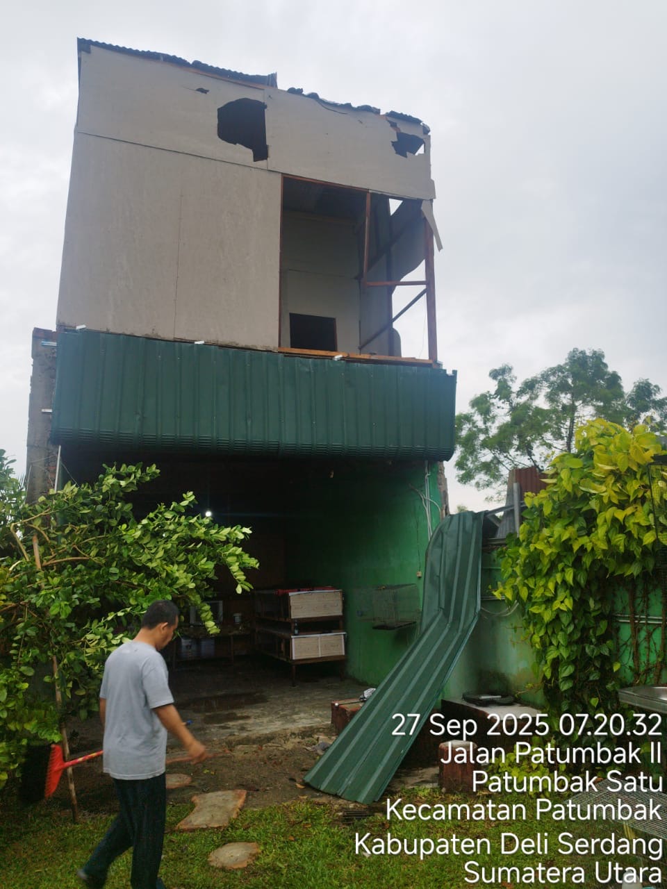 Deli Serdang | TambunPos.com — Bencana angin puting beliung meluluhlantakkan Rumah Tahfidz Qur’an Abu FarhanRumah Tahfidz Qur’an Abu Farhan yang berlokasi di Jalan Pertahanan, Dusun IV, Desa Patumbak Dua, Kecamatan Patumbak, Kabupaten Deli Serdang. Musibah itu terjadi pada Jumat (26/09/2025) menyebabkan bangunan nyaris rata dengan tanah.