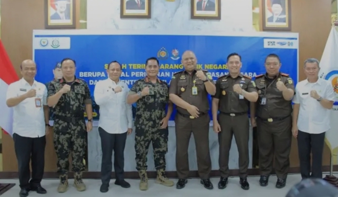 Serah Terima Barang Rampasan Negara berupa 2 Unit Kapal Perikanan dari Dirjen Pengawasan Sumberdaya Kelautan dan Perikanan (DPSKDP) kepada Pemerintah Kabupaten Deli Serdang yang diwakili Sekretaris Daerah di Aula Kantor Pengawasan Sumberdaya Kelautan dan Perikanan (DPSKDP), Rabu (26/11/2025).