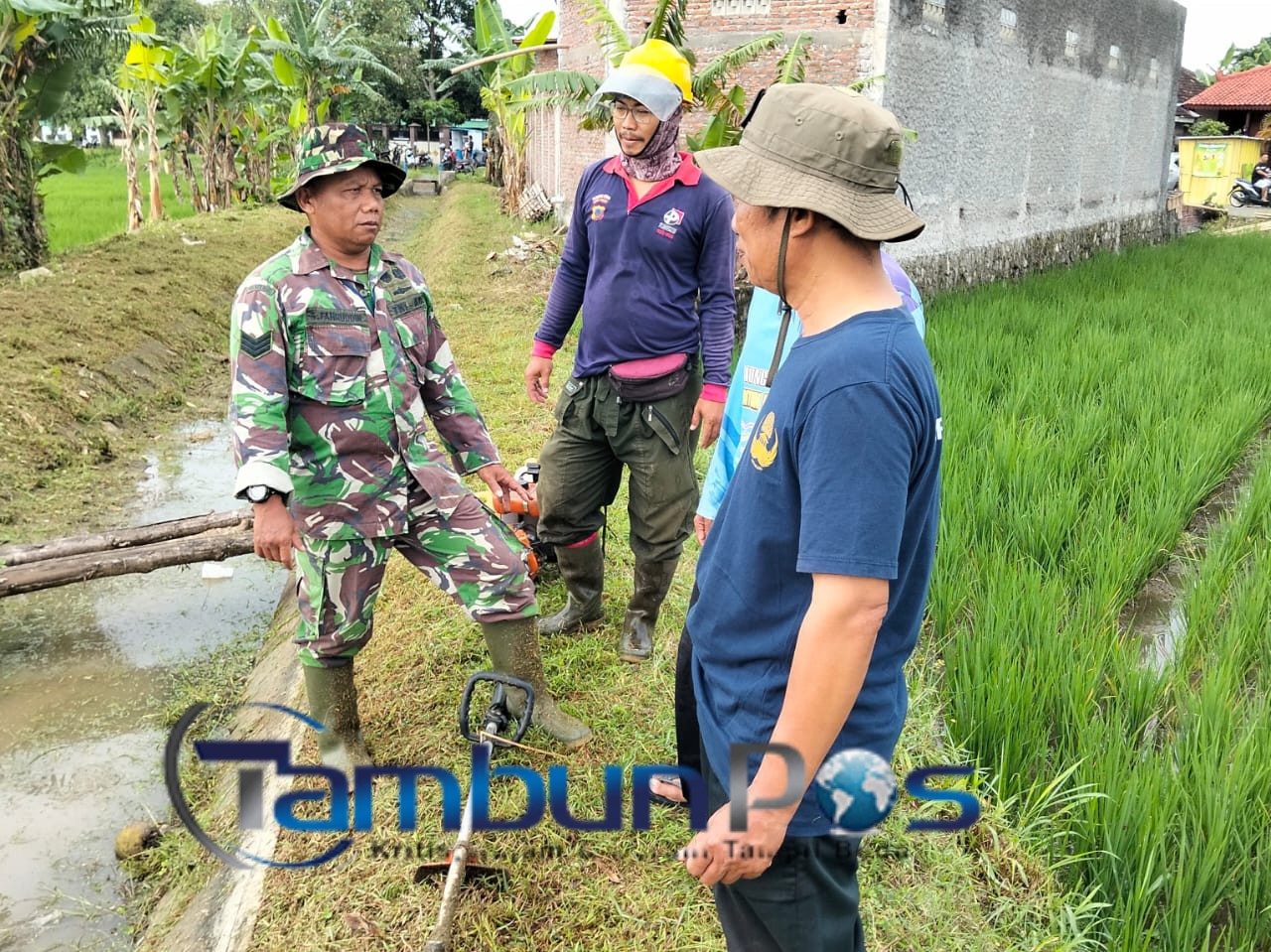 Babinsa Koramil 13/Nogosari Kodim 0724/Boyolali Serka Slamet Fahrudin bersama petugas pengairan melaksanakan kerja bakti pembersihan saluran irigasi persawahan yang bertempat di Dukuh Tinawas Desa Rembun Kecamatan Nogosari Kabupaten Boyolali. Sabtu (04/01/25).