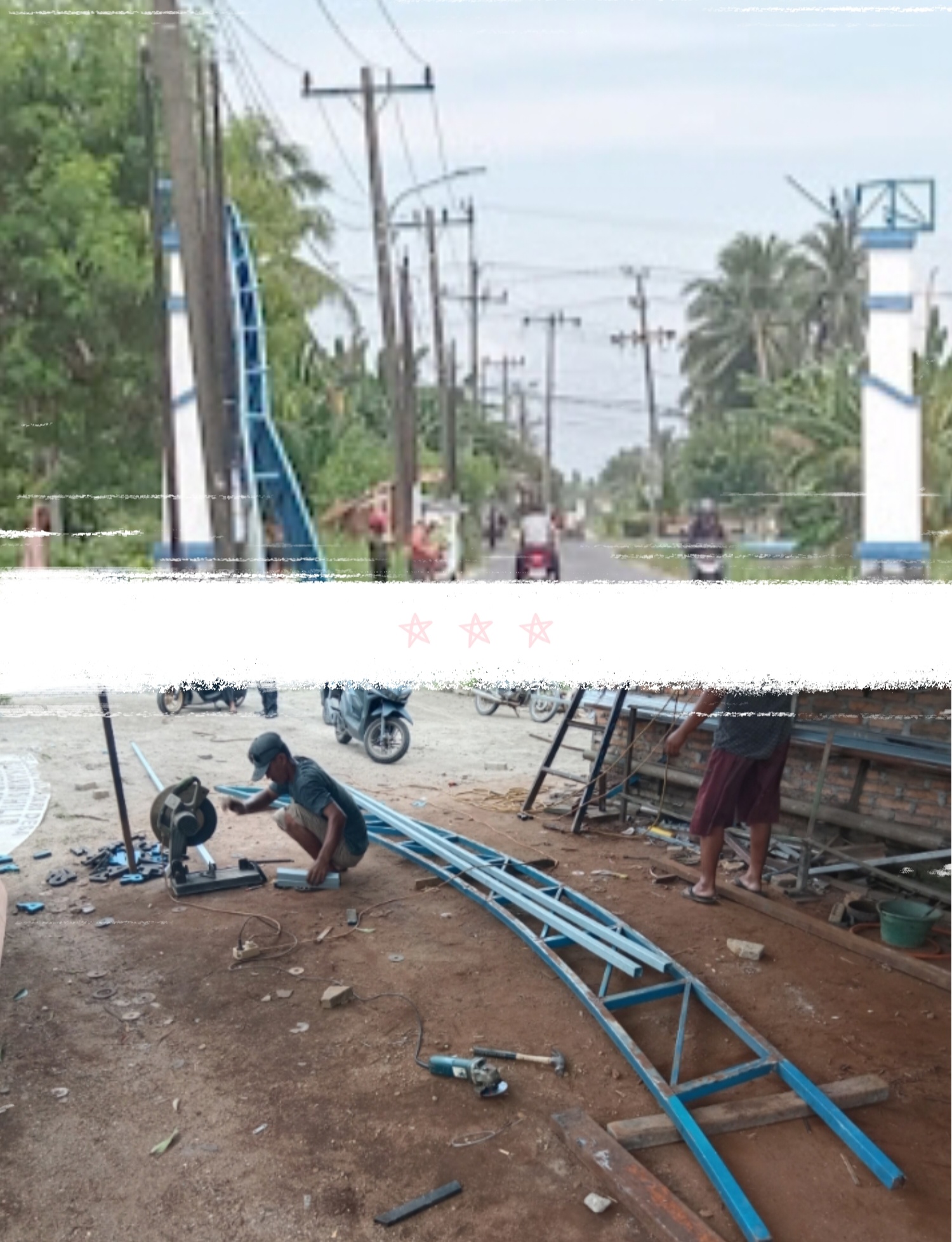 Menurutnya dalam 1 Minggu ini pengerjaan rangka Gapura yang rusak akan selesai dan akan segera dipasang.