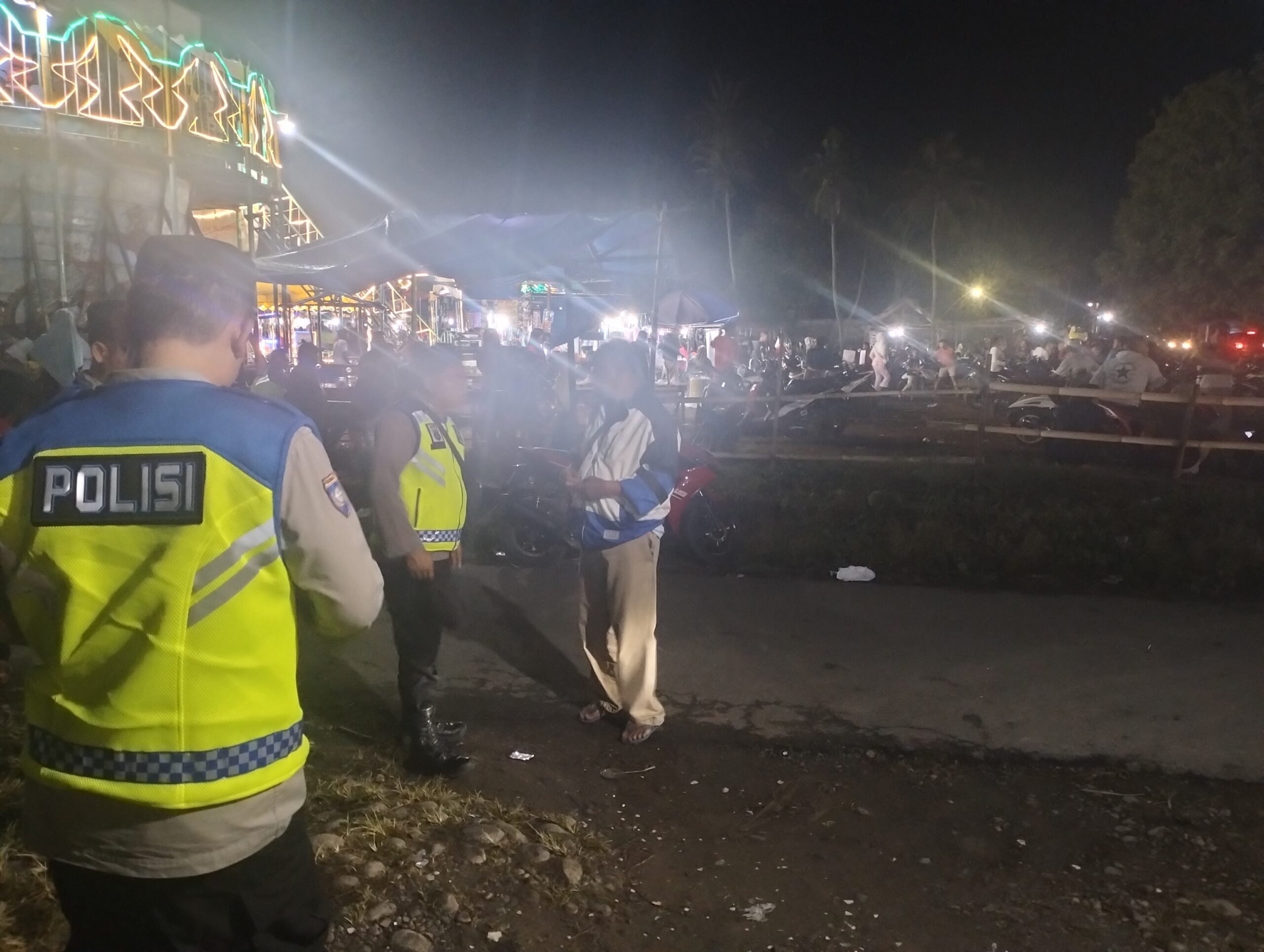 Foto : Personil Polsek Biru – Biru cek lokasi di seputaran pasar malam desa Sidomulyo, Biru – Biru