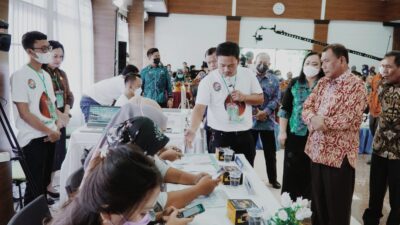 H Ashari Tambunan Bupati Deli Serdang Launching Aplikasi Sarana Layanan Administrasi Kependudukan Deli Serdang atau Salak Deli yang dilaksanakan di Aula Pusat Pengembangan Produk Unggulan Daerah (P3UD) Jalinsunm Tanjung Morawa – Medan, Kabupaten Deli Serdang, Kamis (2/6/2022).