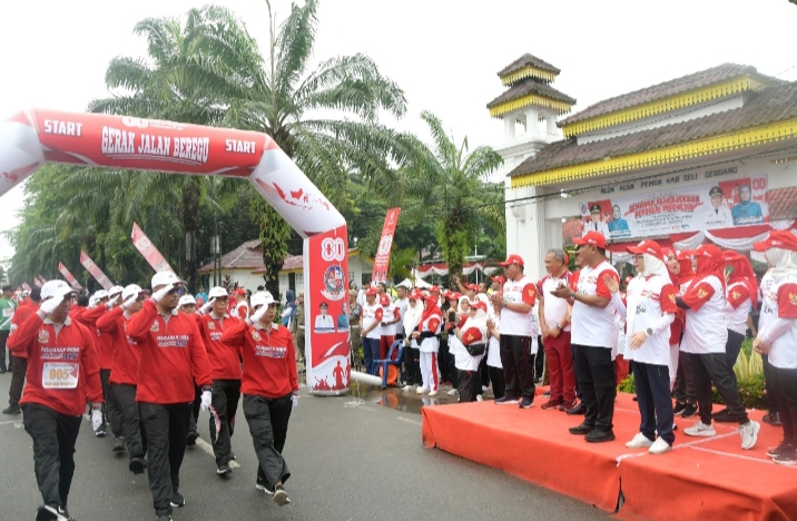 Gerak Jalan Beregu dan Senam Sehat dalam menyambut Hari Ulang Tahun (HUT) ke-80 Kemerdekaan Republik Indonesia di Alun-Alun Pemerintah Kabupaten (Pemkab) Deli Serdang, Senin, 11 Agustus 2025, terlihat begitu semarak.