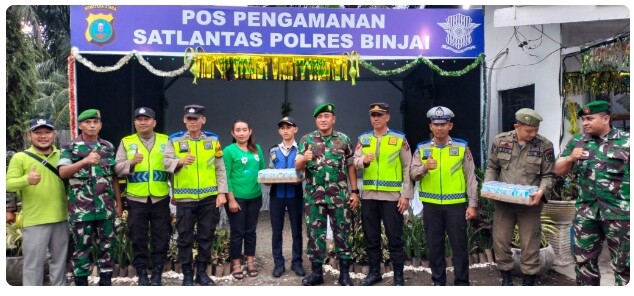 Dandim 0203/Langkat memberikan apresiasi kepada petugas di Pos Pam Idul Fitri 1444 H/2023 M Wilayah Kota Binjai.Jum’at (22/4/2023) Pukul 17.35 wib, ketika melakukan patroli keamanan wilayah.