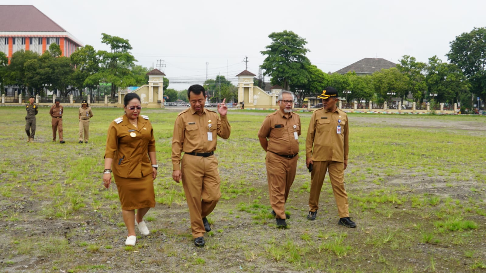 “Nanti Adipura kita pasang di pojokan alun-alun,” ucap Bupati sambil menunjuk lokasi yang nantinya akan menjadi lokasi.