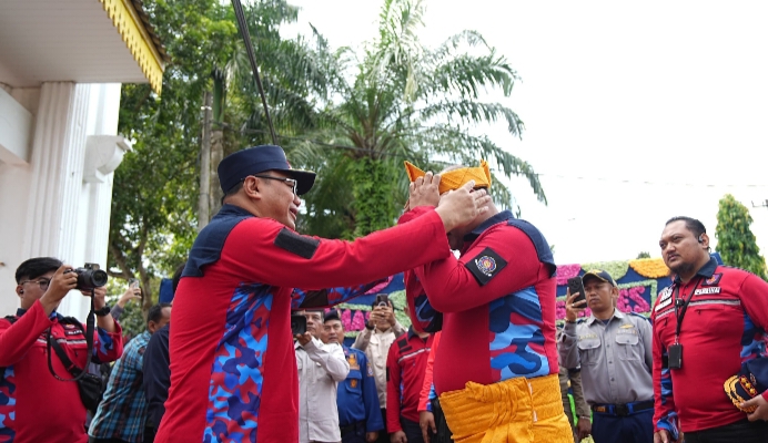 Ket foto : Bupati Deli Serdang dr Asri Ludin Tambunan Kukuhkan 300 Relawan Pemadam Kebakaran