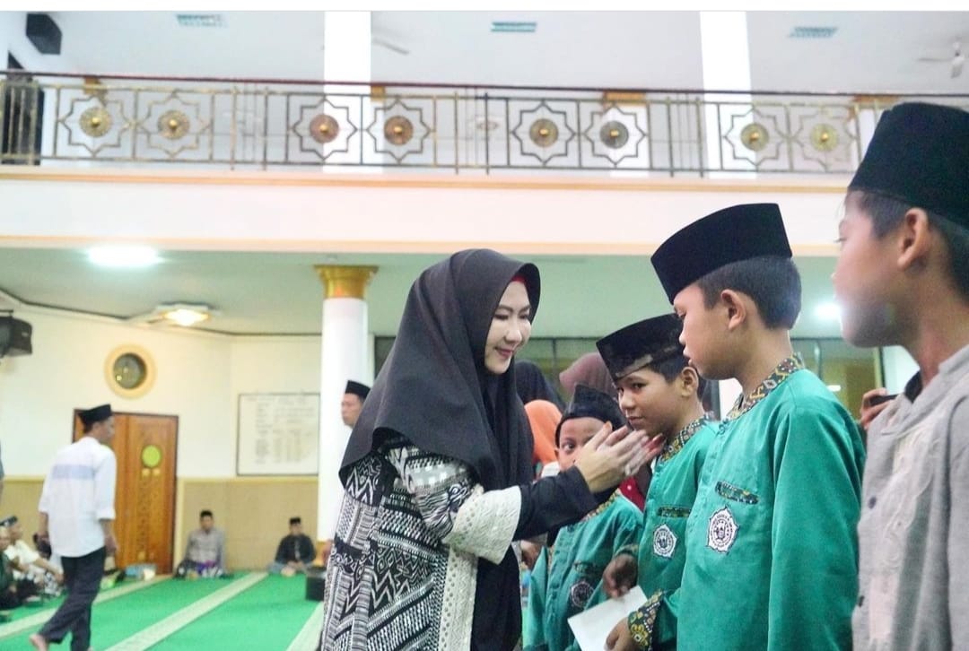 Bupati Tanggamus Hj. Dewi Handajani, menghadiri peringatan Malam Nuzulul Qur’an dan Solat Taraweh Bersama bulan Suci Ramadhan 1444 H , di Masjid Al Islah Pasar Madang Kecamatan Kotaagung, Jumat malam (7/4/2023).