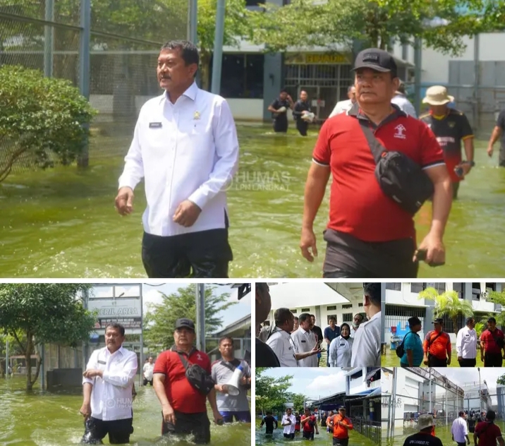 Langkat I TambunPos.com – Direktur Jenderal Pemasyarakatan (Dirjenpas) Mashudi pada hari ini, Kamis (04/12) mengunjungi Lembaga Pemasyarakatan (Lapas) Narkotika Kelas IIA Langkat yang sampai saat ini masih dalam keadaan banjir. Kedatangan Dirjenpas bersama Direktur Kepatuhan Internal, Lilik Sujandi, Direktur Perawatan Kesehatan dan Rehabilitasi, Adhayani Lubis,Direktur Sistem Penilaian Pembinaan, Kadek Anton Budiharta beserta Inspektur Wilayah II, Ian Fidhianto dan Tim, didampingi oleh Kepala Kantor Wilayah Sumut, Yudi Suseno beserta jajaran.