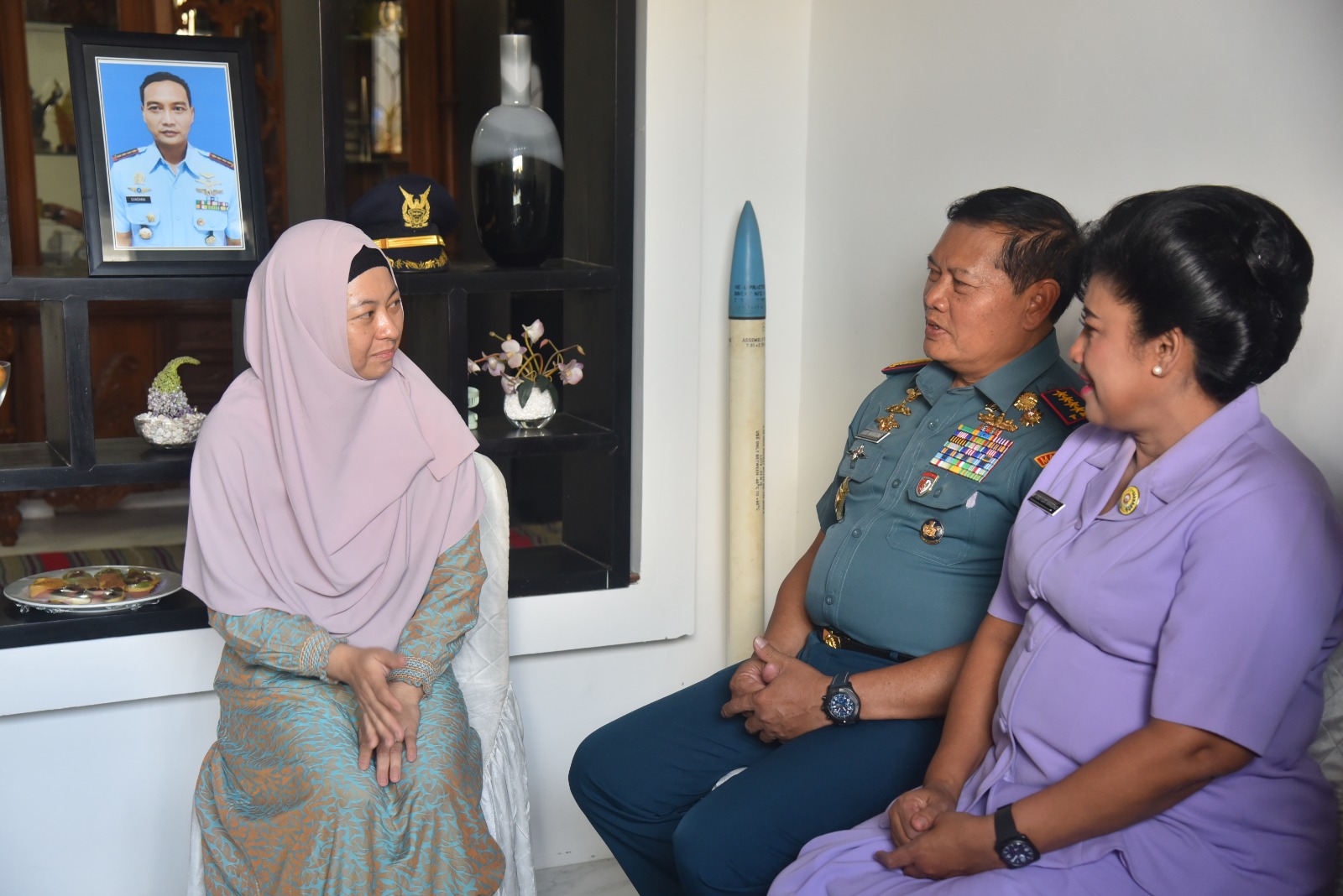 Komandan Pangkalan Utama TNI AL (Danlantamal) V Brigjen TNI Marinir Joni Sulistiawan, S.H., M. Han menyambut dan mendampingi Panglima TNI Laksmana TNI Yudo Margono beserta Ketua Umum Dharma Pertiwi Ny. Vero Yudo Margono dan rombongan yang melaksanakan Takziah Ke Kediaman Empat Prajurit Terbaik TNI AU Yang Gugur Kecelakaan Super Tucano TT 3103 dan TT 3111, Malang. Minggu (19/11/2023)