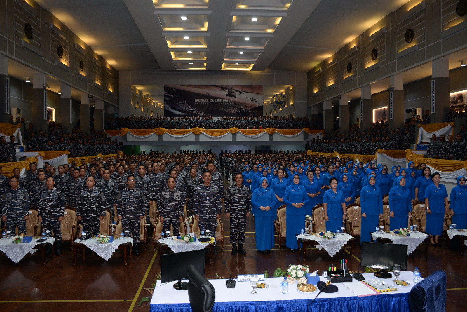 Dalam pengarahannya, Pangkoarmada II Laksda TNI Dr. Denih Hendrata, SE., MM., CHRMP yang didampingi oleh Ketua Daerah Jalasenastri Armada II Ny. Kiki Denih Hendrata mengungkapkan tentang pentingnya “Tri Pilar Pembinaan”/ 3 pilar Pembinaan yang mencangkup tentang Profesionalisme Prajurit, kesiapan Alutsista yang dimiliki dan kesiapan operasional dalam menunjang tugas – tugas dalam Sistem Senjata Armada Terpadu (SSAT).