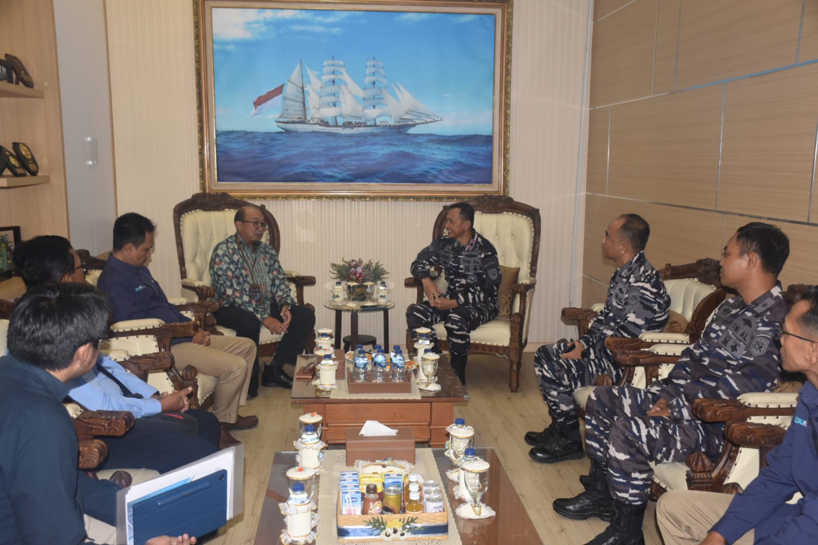 Komandan Pangkalan Utama TNI Angkatan Laut (Danlantamal) V Brigjen TNI Marinir Joni Sulistiawan, S. H., M. Han menerima kunjungan Audiesi General Manager PT PLN Persero UIP JBTB Pak Anang yahmadi dan
