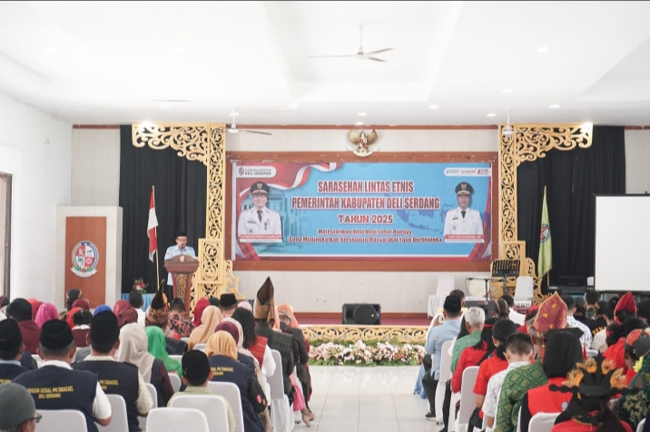 “Mari bangun komunikasi yang lebih erat antaretnis dan antarelemen masyarakat, sehingga potensi perbedaan tidak menjadi sumber perpecahan, melainkan menjadi energi positif untuk memperkuat persatuan dan kesatuan di Kabupaten Deli Serdang,” pesan Wakil Bupati Deli Serdang, Lom Lom Suwondo SS diwakili Asisten I Pemerintahan dan Kesejahteraan Rakyat, Drs Zainal Abidin Hutagalung MAP, pada Sarasehan Lintas Etnis Kabupaten Deli Serdang di Balairung Pemerintah Kabupaten (Pemkab) Deli Serdang, Rabu (24/12/2025).