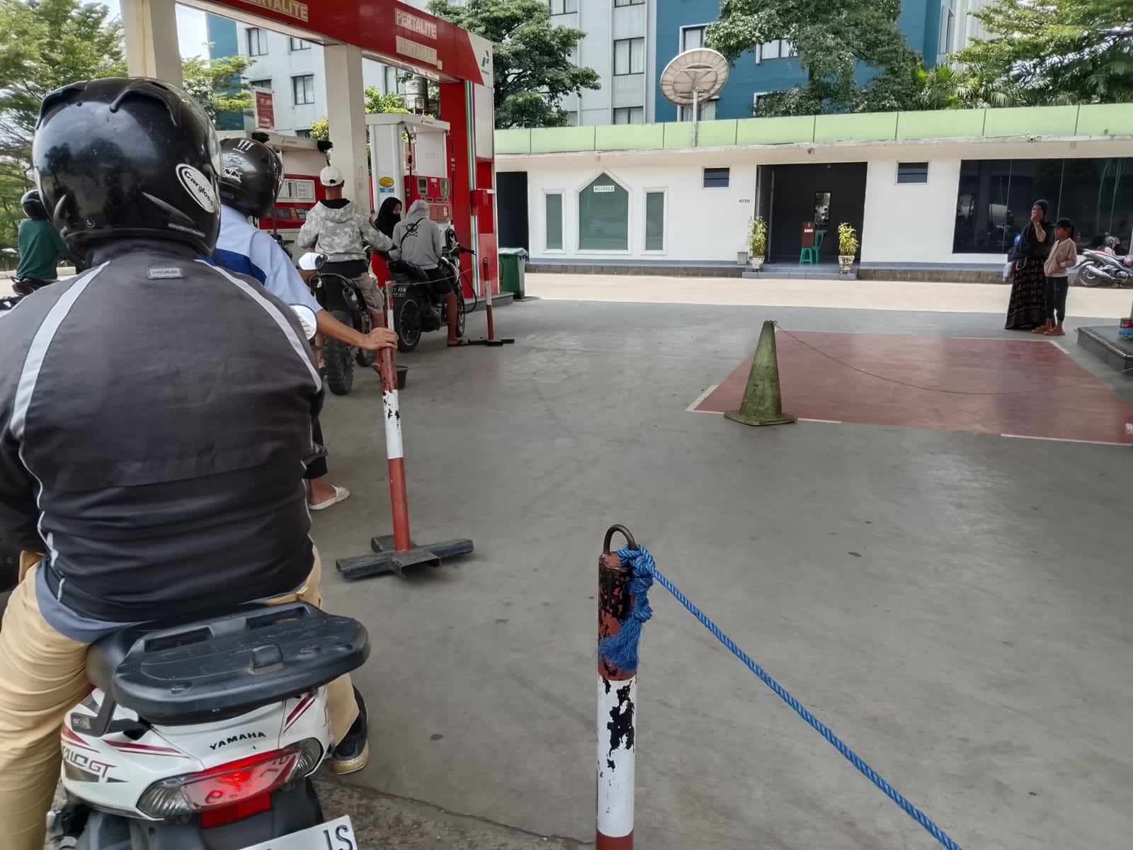 Dari pantauan awak media, terlihat salah satu pengendara menggunakan motor jenis Thunder melakukan pengisian BBM jenis pertalite