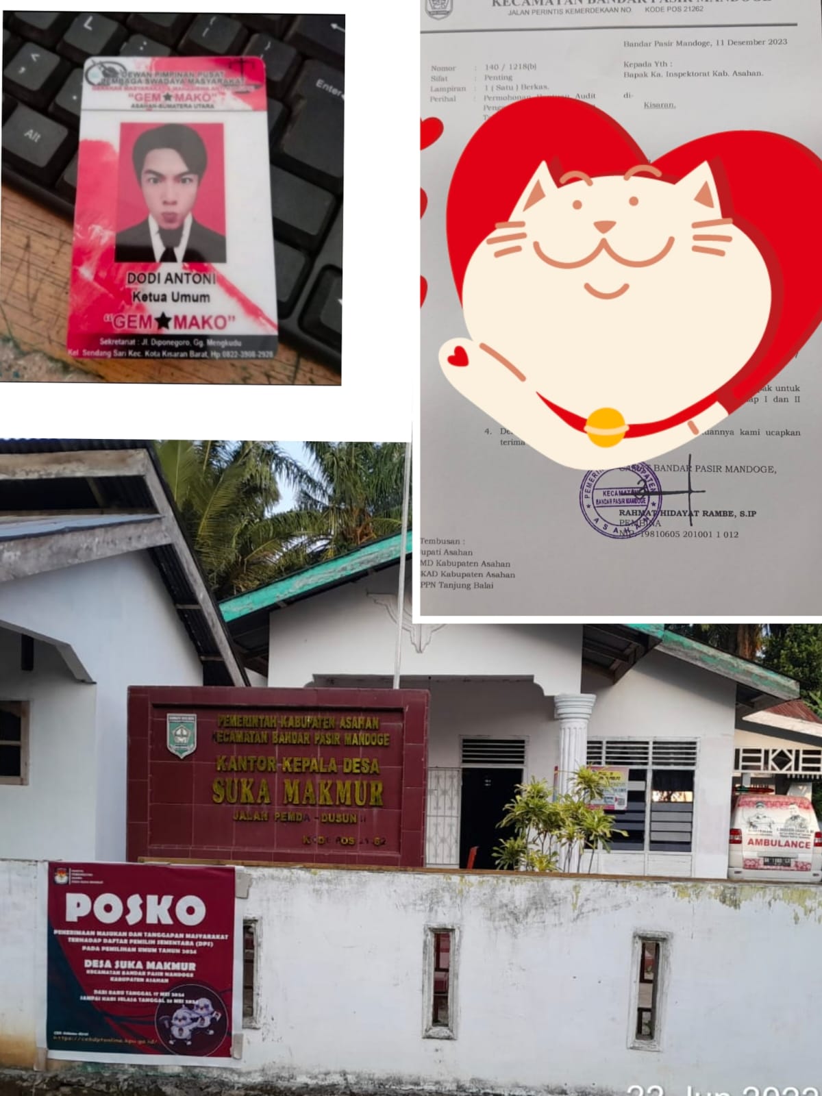 Mohon ijin melaporkan kepada Bapak Presiden Republik Indonesia Ir H Joko Widodo diduga Sukirman Kepala Desa Suka Makmur Kecamatan Bandar Pasir Mandoge Kabupaten Asahan Provinsi Sumatera Utara terkait penggunaan dana desa tahap I dan tahap II di desa suka makmur anggaran tahun 2023. Adapun temuan dalam data surat dari camat Rahmat Hidayat Rambe yang di tujukan ke dinas Inspektorat kabupaten Asahan sebagai berikut. Yaitu: