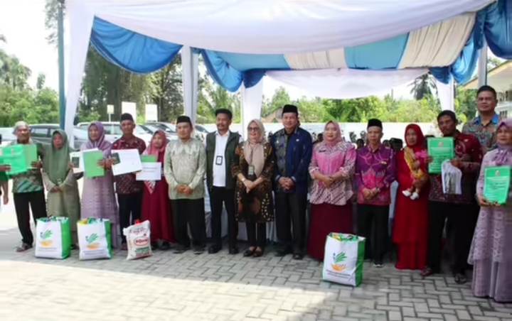 Foto : Kadis Dukcapil Deli Serdang didampingi Kabid Dafduk menyerahkan Dokumen Kependudukan kepada Warga pada pelaksanaan Isbath Nikah 2025