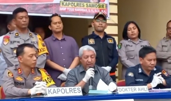 Dalam konferensi pers Polres Samosir pada Selasa (14/3/23) dokter ahli, dr Ismurizal SH MH SpF membeberkan hasil forensik kematian Bripka Arfan Saragih, yang diakibatkan masuknya Sianida ke lambung dan adanya pendarahan dibagian kepala karena terkena benda tumpul.