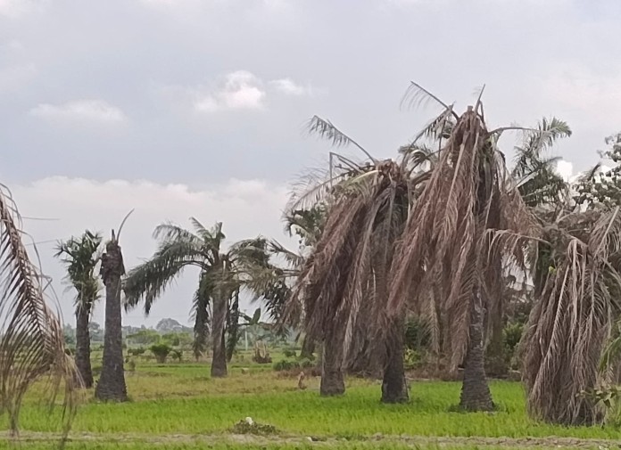 Foto : Pohon sawit yang rusak diduga disuntik oleh penggarap.