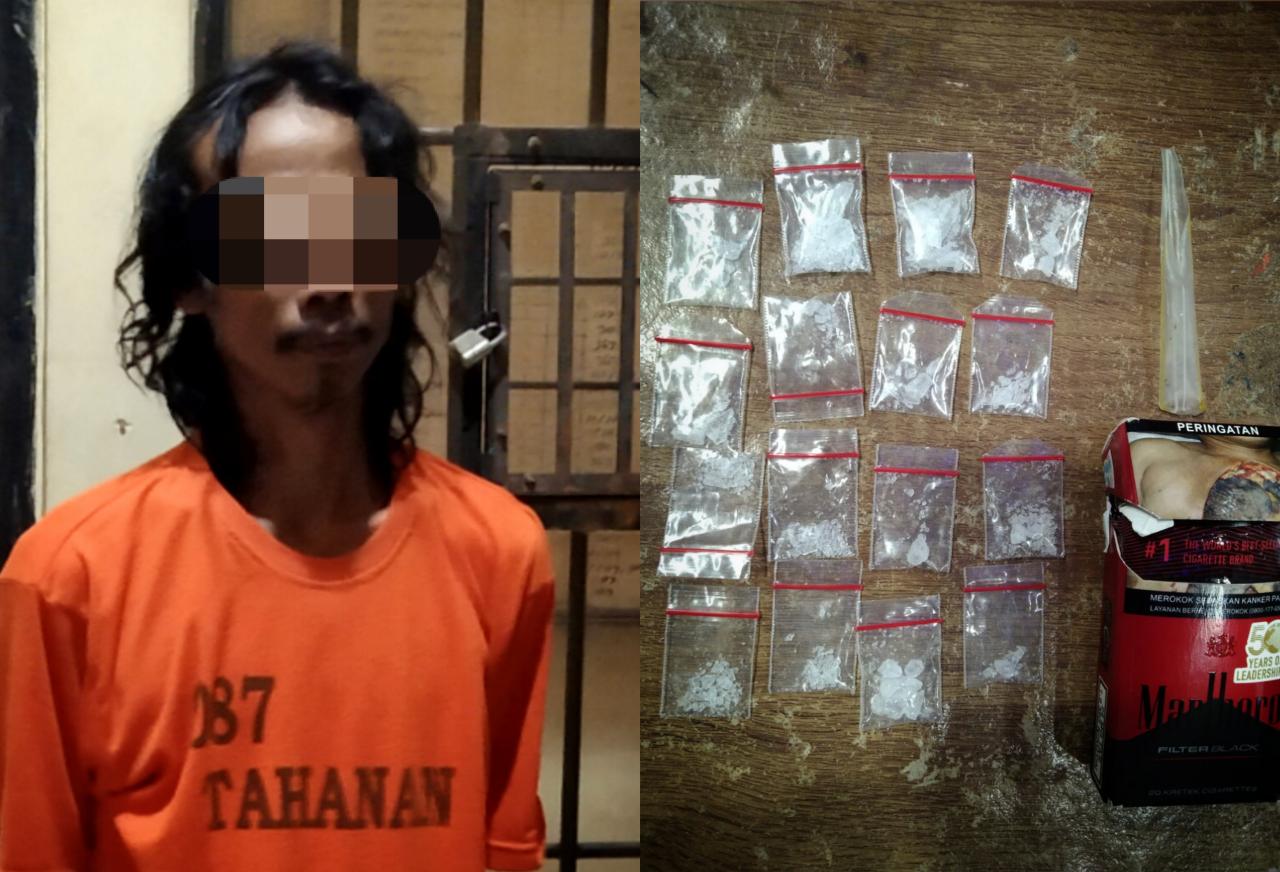Dari tangan pelaku, petugas berhasil mengamankan barang bukti berupa 16 bungkus plastik klip bening berisi kristal warna putih diduga Narkotika jenis sabu dengan berat 5,5 Gr.