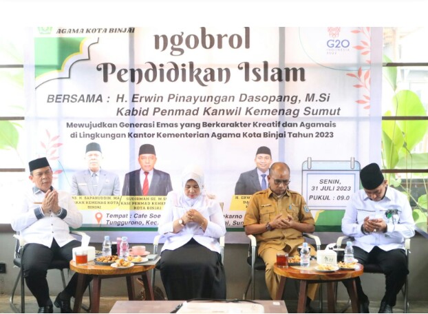 Kepala Dinas Pendidikan Kota Binjai Drs. Edi Mulia, MAP hadiri Forum “Ngopi (Ngobrol Pendidikan Agama Islam)” di Cafe Soeta Dining Hall, Jalan Soekarno Hatta No. 258 Binjai, Senin (31-07-2023).