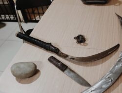Foto: Barang Bukti Senjata Tajam Berupa Celurit dan Klewang Saat di Amankan