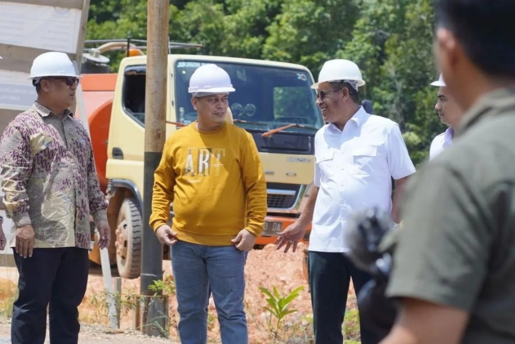 Foto: Gubernur Ansar Ahmad bersama Wakil Gubernur Nyanyang Haris Pratamura meninjau progres pembangunan jalan menuju Pelabuhan Roro Penarik. Minggu 7 September 2025.