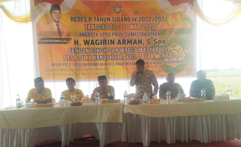 Haji Wagirin Arman, S Sos anggota DPRD Provinsi Sumatera Utara dari Fraksi Partai Golkar,melaksanakan reses IV masa sidang tahun 2022-2023 di Desa Sukamandi Hilir Kecamatan Pagar Merbau Kabupaten Deli Serdang, Kamis (02/03/2023).