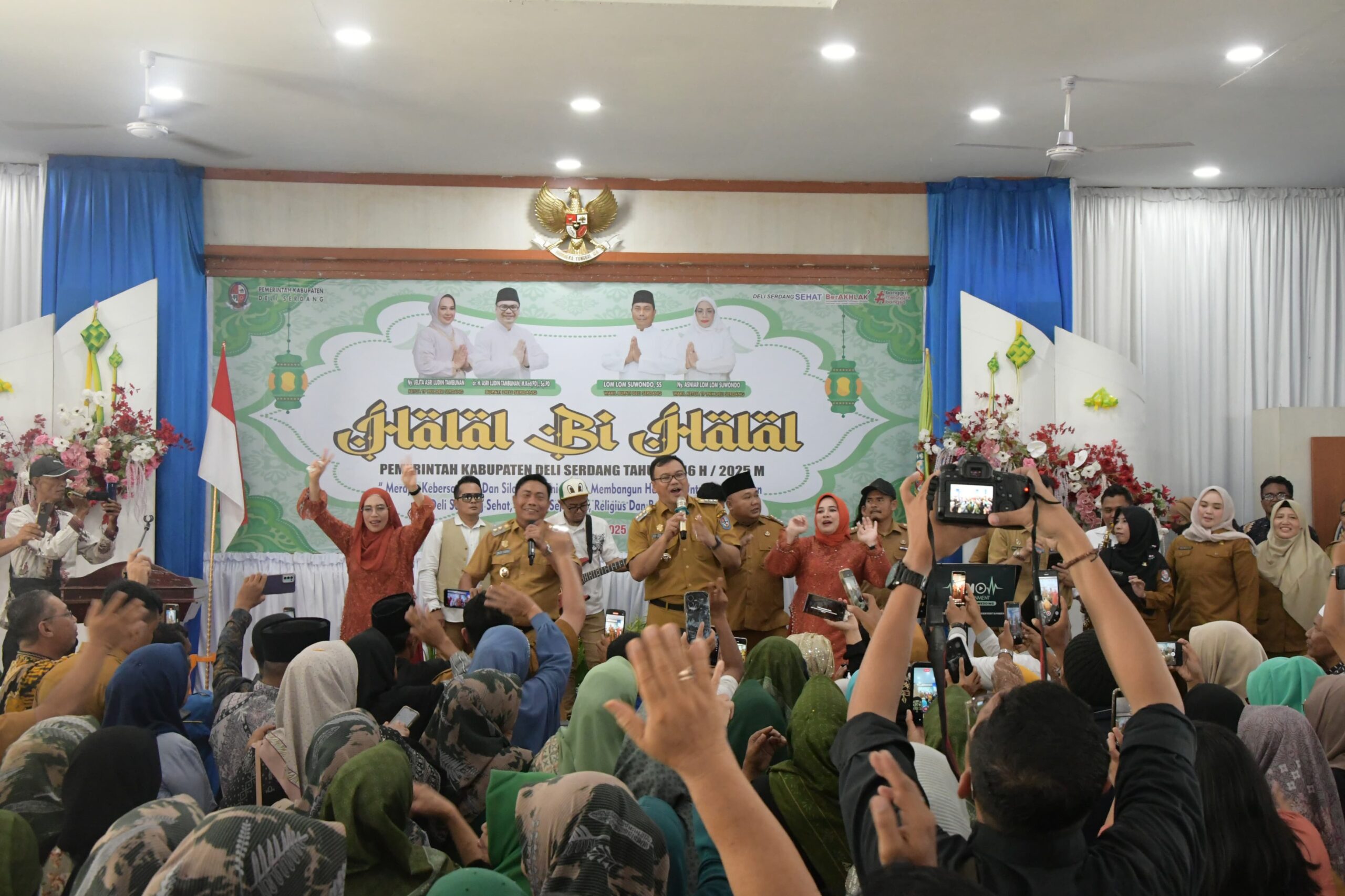 Tidak seperti tahun-tahun sebelumnya. Jika sebelumnya, halal bi halal Idul Fitri Pemerintah Kabupaten (Pemkab) Deli Serdang diadakan di Rumah Dinas Bupati, namun tidak untuk kali ini. Halal bi halal 1446 Hijriah tahun ini digelar di Balairung Pemkab Deli Serdang, Selasa (8/4/2025).