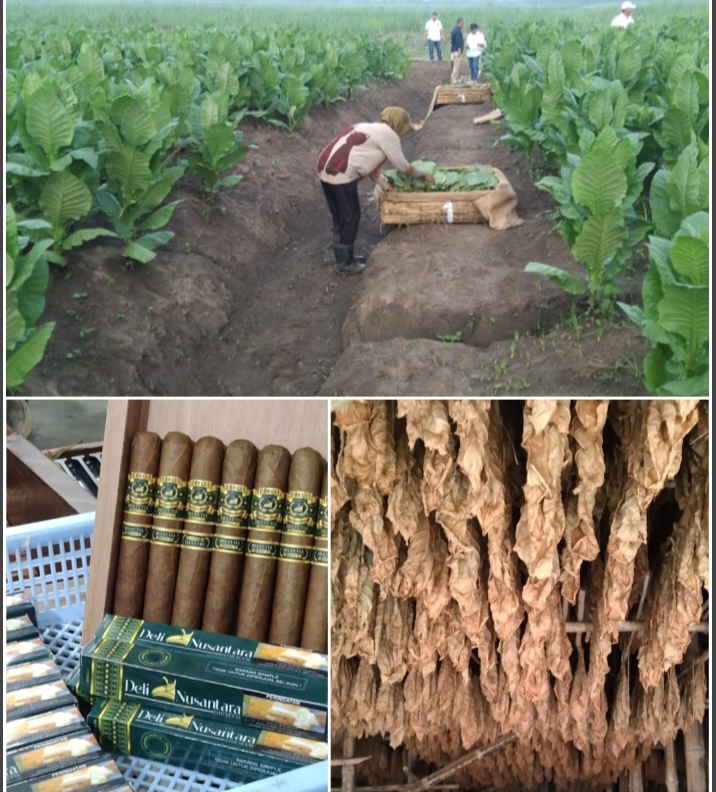 Ket foto : Tanaman Tembakau, Cerutu Deli dan proses pengolahan Daun Tembakau.