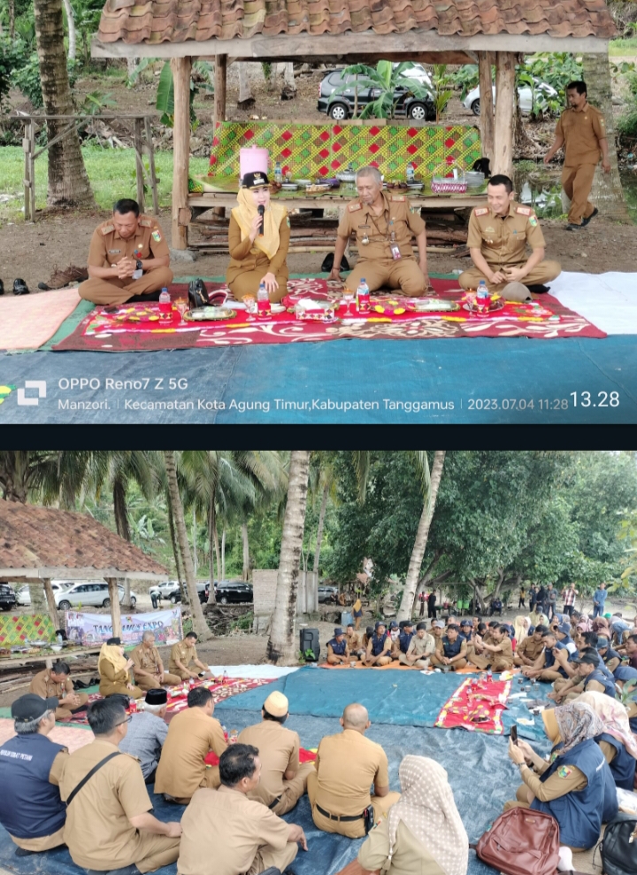 Bupati Tanggamus Hj. Dewi handajani SE. MM Menghadiri Sekaligus Silaturahmi dengan Penyuluh Pertanian Lapangan (PPL PNS / P3K /THL TBPP) Se-Kabupaten Tanggamus di Pantai Wisata cukuh betung Pekon Sukabanjar Kecamatan Kotim Selasa (04/07/23).