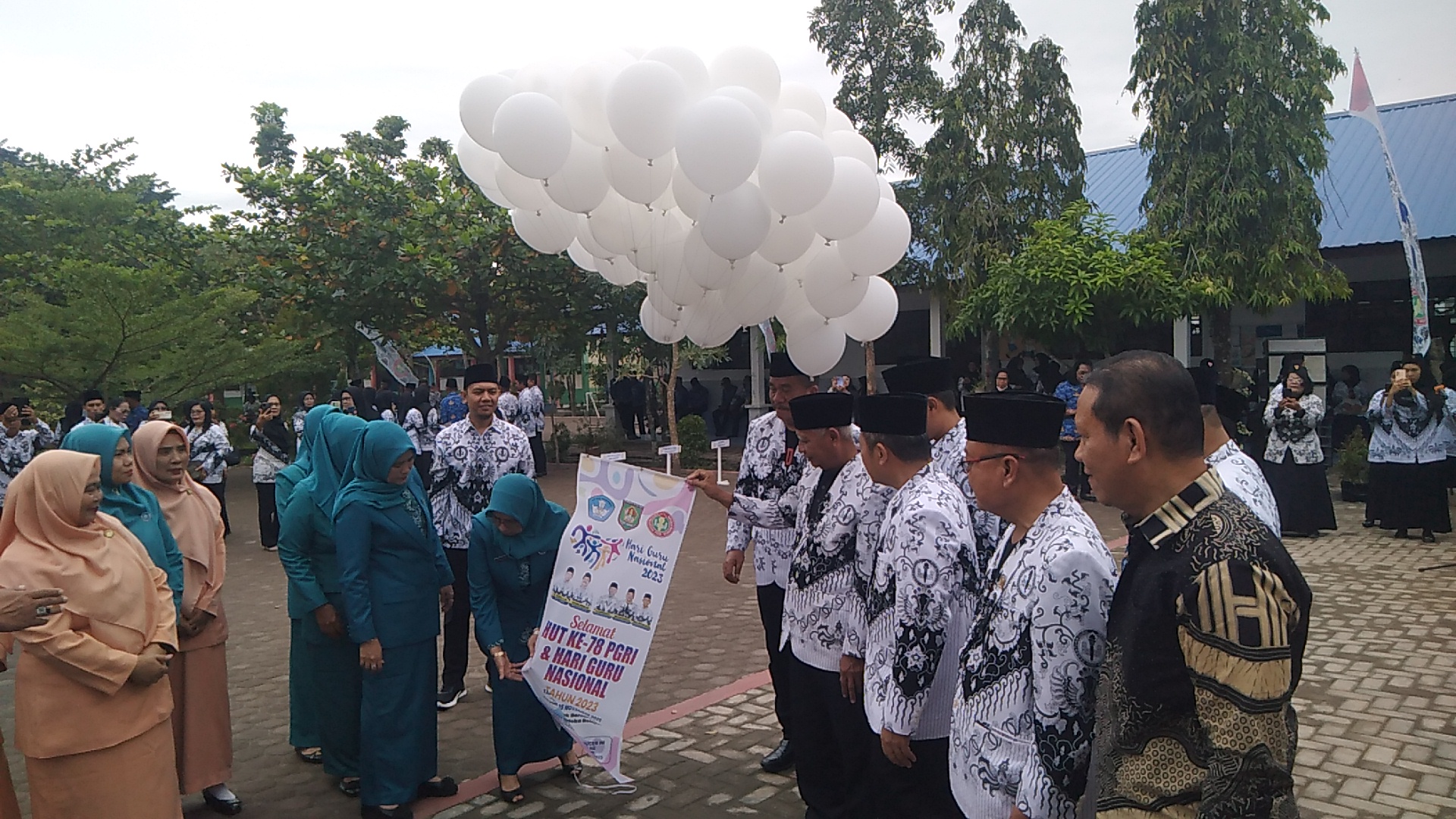 Selesai Upacara HUT PGRI Ke- 78 Tahun 2023 acara dilanjutkan dengan pemotongan nasi tumpeng oleh Bupati Asahan serta pelepasan 78 buah balon ke udara oleh Bupati,Wakil Bupati,Sekda Kabupaten Asahan dan Kepala Dinas Pendidikan Kabupaten Asahan.