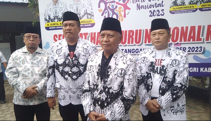 Bupati Asahan H. Surya,Bsc menjelaskan masing-masing elemen logo Hari Guru Nasional 2023 :