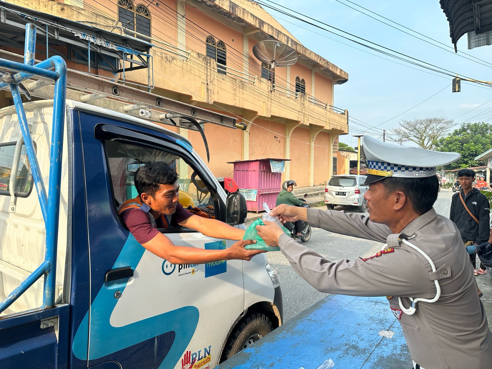 Foto: Personil satlantas polres Batu Bara sedang berbagi takjil.