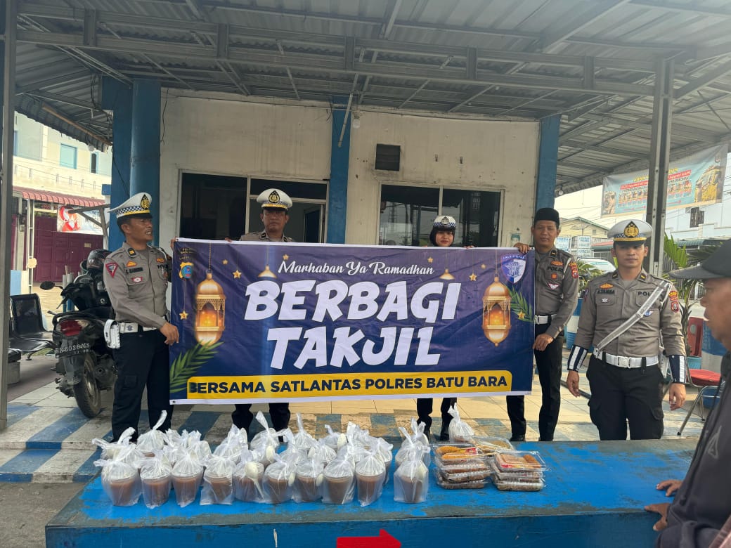 Foto: Personil satlantas polres Batu Bara sedang berbagi takjil.