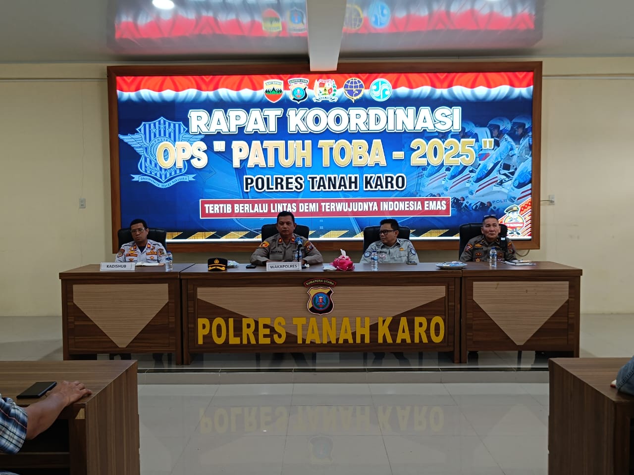 Rapat tersebut dipimpin langsung oleh Wakapolres Tanah Karo, Kompol Zulham, S.H., S.Kom., M.H., M.M., dan dihadiri oleh jajaran pejabat utama Polres Tanah Karo, termasuk Kabag Ops Kompol Eddy Sudrajat, S.H., Kasat Lantas AKP Rabiah Hasibuan, Kasat Intelkam AKP Handel Sembiring, serta personel lainnya yang terlibat dalam operasi.
