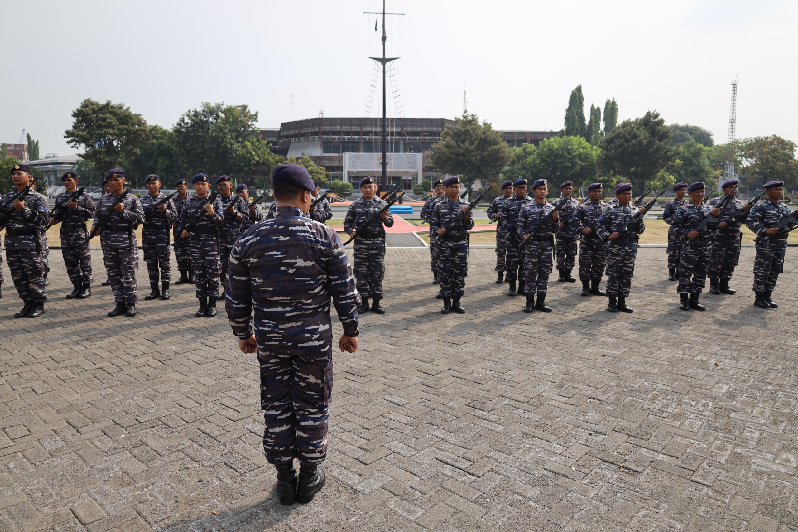 Pangkalan Utama TNI AL (Lantamal) V melaksanakan Apel kesiapan dalam rangka Uji Gladi Tugas Tempur (Glagaspur) pangkalan tingkat P1-P2 dan L1-L2 oleh Tim Uji dari Komando Latihan (Kolat) Koarmada II bertempat di lapangan apel Mako Lantamal V Perak, Surabaya. Senin (27/11/23).