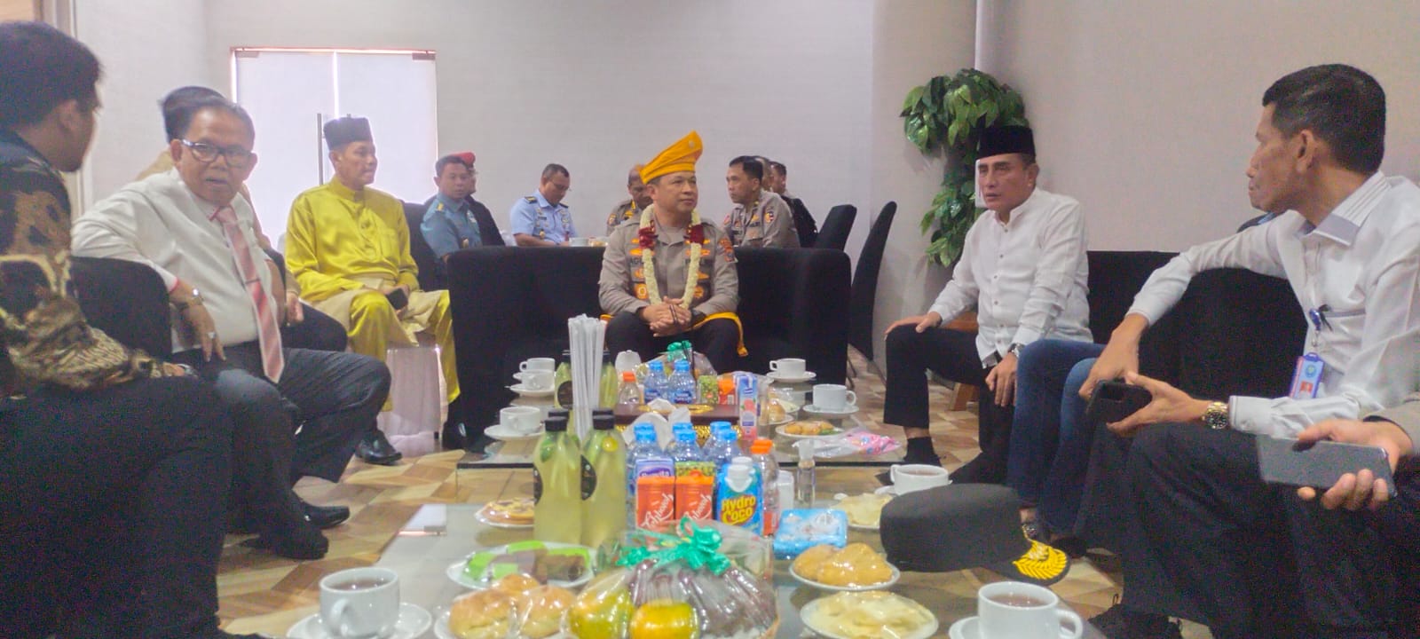 Giat Penyambutan Kapolda beserta rombongan diawali dengan sambutan berupa tarian serta pemasangan pakaian khas adat melayu oleh Bupati Deli Serdang dilanjutkan dengan pemasangan kalung bunga yang diberikan oleh Wakapolda Sumut.