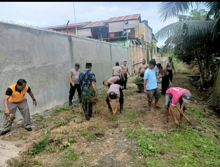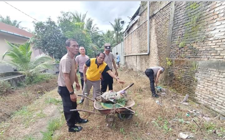 Melaksanakan Giat Peduli Lingkungan dengan membersihkan sampah secara serentak bersama Polri yang berada di jalan umum Dusun II Desa Subur Kecamatan Air Joman.