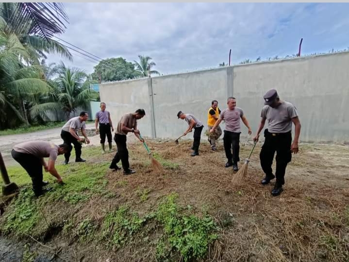 Kamis 13/07/2023 Kapolsek Air Joman bersama personil melaksanakan giat peduli Lingkungan dengan membersihkan sampah secara serentak bersama Polri.