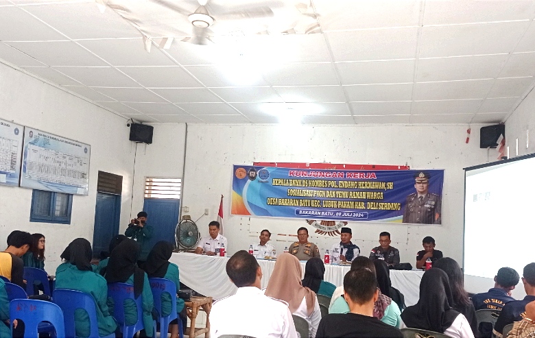 Kepala Desa Bakaran Batu Kecamatan Lubuk Pakam Irwan Tanjung (Iwan Aiey) menerima kunjungan kerja BNNK Deli Serdang dalam mensosialisasikan Pencegahan, Pemberantasan, Penyalahgunaan , dan Peredaran Gelap Narkoba (P4GN) Rabu 10 Juli 2024 di aula sekretariatan Desa Bakaran Batu menyampaikan sambutannya mengatakan bahayanya bagi penggunaan narkoba bukan hanya terjadi pada orang dewasa tapi remaja dan anak anak yang awalnya hanya penasaran dengan rasanya,terus ikut-ikutan mencoba dan saat sudah merasakan nikmatnya mengkonsumsinya akhirnya jadi ketergantungan menggunakan narkoba. Banyak pengguna obat-obatan ini yang awalnya tergoda merasakan kesenangan sesaat atau sebagai pelarian dari masalah yang dihadapi. Padahal, efek narkoba dapat merusak kesehatan secara fisik dan kejiwaan. Masa remaja adalah masa pencarian jati diri seseorang, pada masa ini anak memiliki emosi yang tidak stabil,”tuturnya