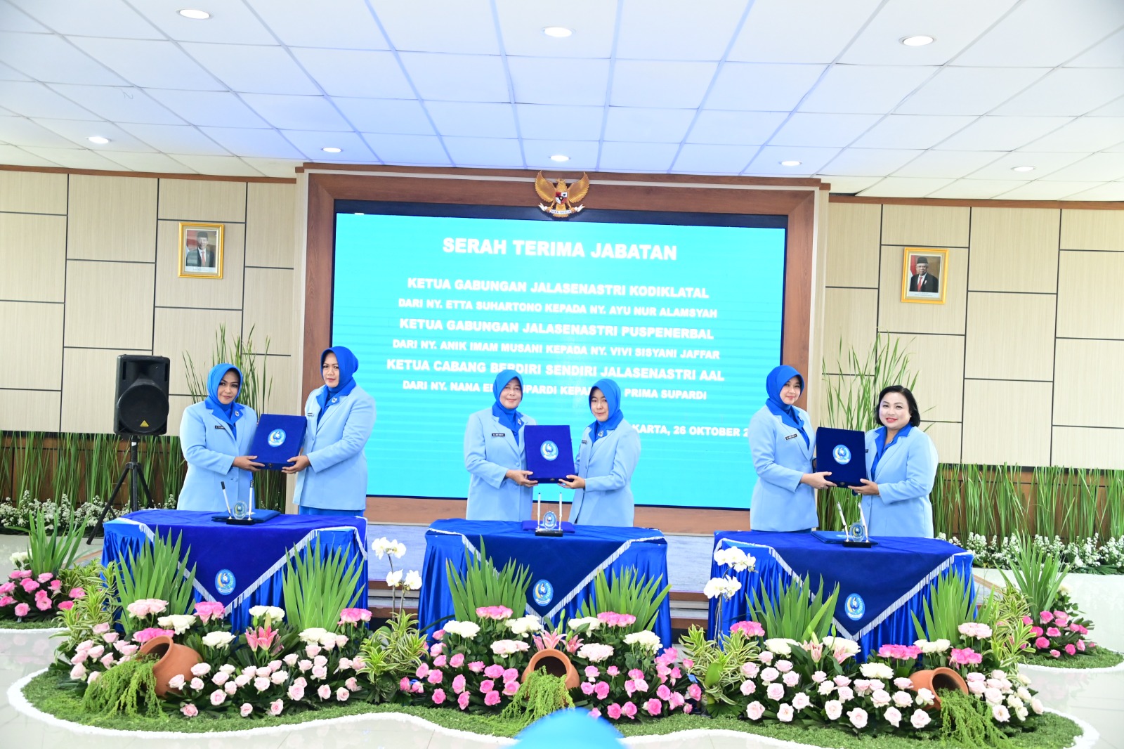 Ketua Umum (Ketum) Jalasenastri Ny. Fera Muhammad Ali memimpin Serah Terima Jabatan (Sertijab) Ketua Gabungan Jalasenastri Kodiklatal dari Ny. Etta Suhartono Kepada Ny. Ayu Nur Alamsyah, bertempat di Selasar Denma Mabesal, Jakarta Timur. Kamis, (26/10/2023).
