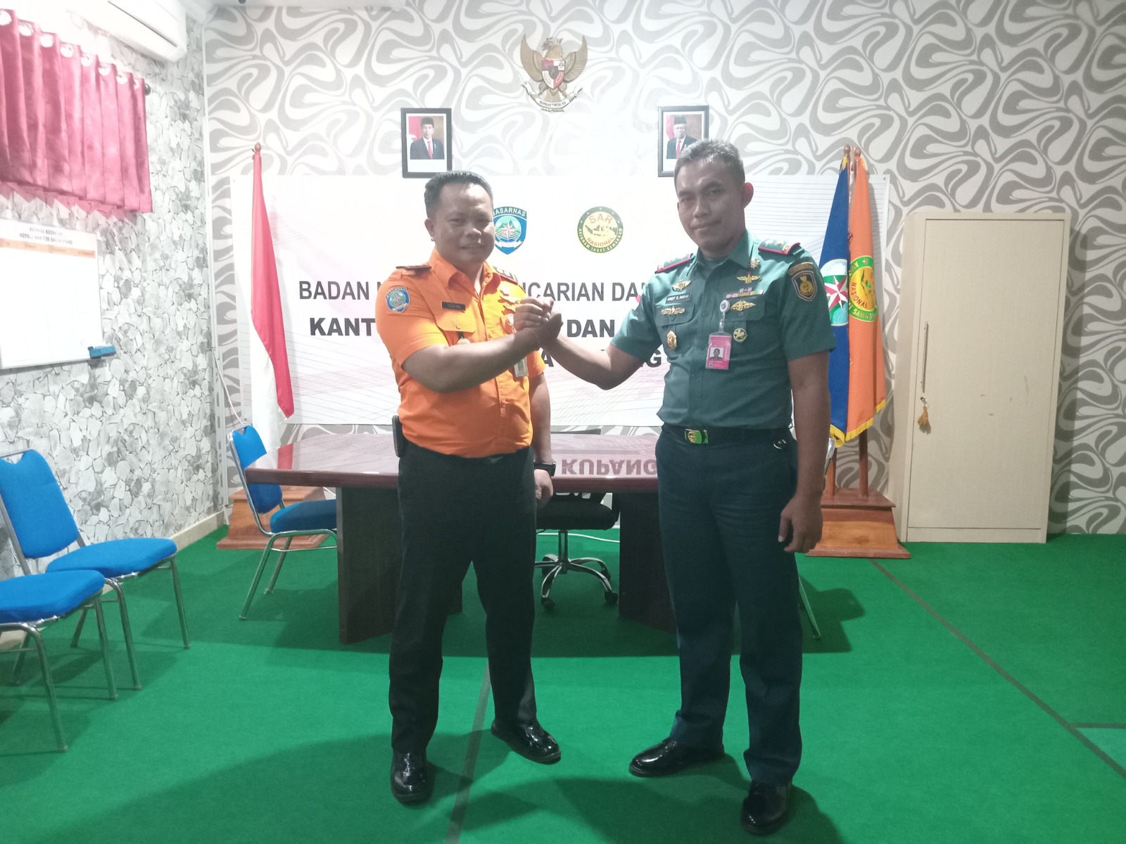 Kedatangan Danlanudal Kupang didampingi Pgs. Pasops Lanudal Kupang Letda Laut (P) La Poi Wali, disambut baik oleh Kepala Kantor SAR Kota Kupang l Putu Sudayana.