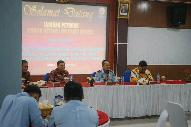 Lembaga Pemasyarakatan Kelas I Medan menerima kunjungan studi tiru Tim Pembangunan Zona Integritas Rumah Detensi Imigrasi Medan, Kamis (16/02/2023).